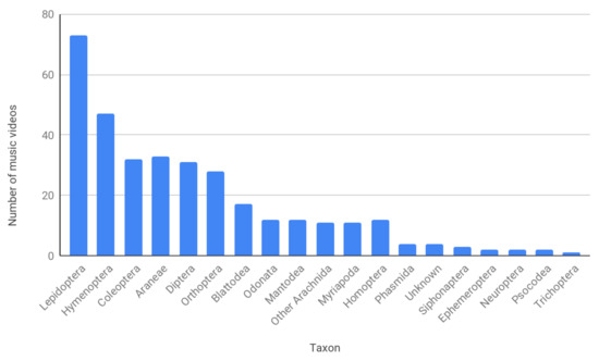 The distribution of arthropod taxa observed in music videos.
