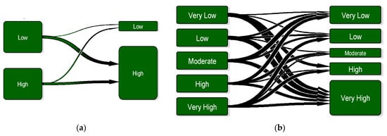 In the current work, the case of l = 2 chains was considered as two realizations of the S = 5-state Markov chains (theoretical and empirical) that are tested for homogeneity. The frequency entries, are: and i = 1,2, j = 1,2,… and k = 1,2,..,5.