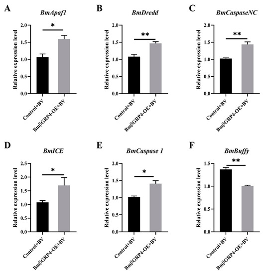 APA StyleWang, J., Zhu, L.-B., Ma, Y., Liu, Y.-X., Cao, H.-H., Wang, Y.-L., Kong, X., Huang, Z.-H., Zhu, H.-D., Wang, Y.-X., Liu, S.-H., & Xu, J.-P. (2021). Bombyx mori β-1,3-Glucan Recognition Protein 4 (BmβGRP4) Could Inhibit the Proliferation of B. mori Nucleopolyhedrovirus through Promoting Apoptosis. Insects, 12(8), 743. https://doi.org/10.3390/insects12080743