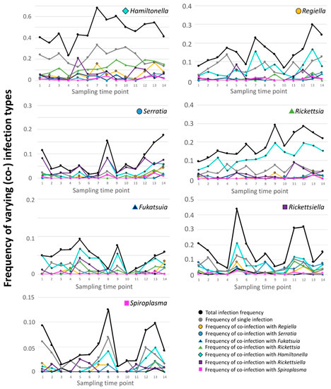 3.1. 2012 Longitudinal Field Study—Symbiont Frequency Variation over Time