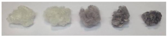 3.1. The Efficiency of the Impregnation Process and Fibers Color Change