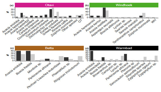 We are greatly indebted to Coleen Mannheimer for numerous plant identifications. We thank Christopher Bird for logistical assistance during the fieldtrips, and Benson Muramba, Nanguei Karuaera and the National Museum of Namibia for general assistance. The Finkenstein Homeowners Association (Windhoek study site), W. & G. von Maltzahn (Farm Hüttenhof; Otavi study site), G. Goosen (Manager Haloli Piggery, Farm Haloli 860; Otavi site for survival study) and T.N. Esterhuizen (Farm Eckberg 80; part of Betta study site) kindly allowed us to gather data on their properties. This research was conducted under permit no 1362/2017 granted by the Ministry of Environment and Tourism in Windhoek, Namibia.