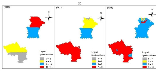 In all studies, how species respond to environmental change is clarified, but complex biotic interactions are the most important in understanding diversity loss [35,36]. For example, climate and habitats can change species dynamics [12], and habitat loss is most likely to cause insect extinctions as community structure, the physical environment, and community stability change [37]. Furthermore, theoretical methods to model large-scale changes in biodiversity indicate that species response is almost equal in time and space [38]. Indeed, the spatiotemporal dynamics of species richness is important for knowing how environmental variations impact biodiversity [39,40]. All of these endeavors increase our understanding of the influence of potential driving factors over habitats and regions [41,42,43]. Therefore, models used to estimate trends in geographic changes in many species and their interaction with habitats and regions are needed to increase our understanding of biodiversity loss.