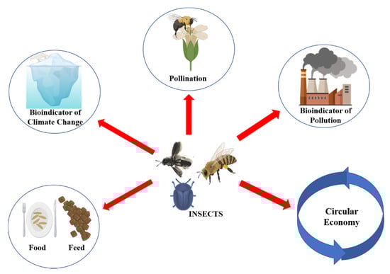 Insects play a key role in ecosystem functions maintenance. They are the key pollination agents of most crops and wild vegetation and find a role in the circular economy. Moreover, they are bioindicators of climate change and pollution and find applications in feed and food.
