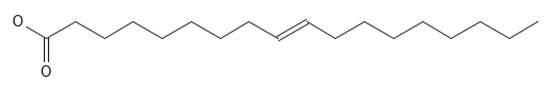 Oleic acid chemical structure, obtained with Draw Structure software by PubChem (https://pubchem.ncbi.nlm.nih.gov/#draw=true (accessed on 8 October 2021)).