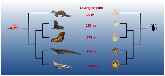 Insects first appeared more than 420 Mya during the Silurian–Ordovician epoch and, during the next 300 million years, they dispersed and diversified, colonizing nearly every available mainland habitat. Intriguingly, the most ecologically and evolutionarily successful group of organisms on Earth is virtually absent from the greatest available habitat, i.e., the ocean, which constitutes more than 99% of our biosphere. This lack of insects in the ocean, as well as their occasional occurrence in marine ecosystems, contrasts with their richness on land, leading to a variety of scientific hypotheses and assumptions, which we shall explore further in this paper [3]. Yet, there exists a particular group of insects that managed to survive underwater at great depths during long immersion periods, i.e., seal lice.