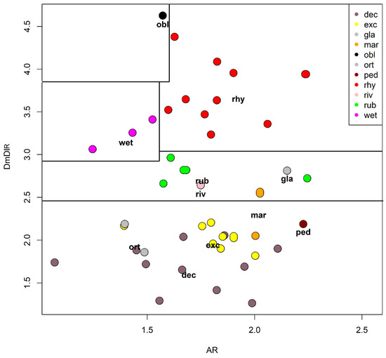 AR = 1.45–2.11, DmDl = 1.27–2.06, A1 = 50 (43–62) long, 15.5 (13–17) wide, A2–5 = 30 (21–39), Dm = 19 (16–21), Dl = 11 (10–12).