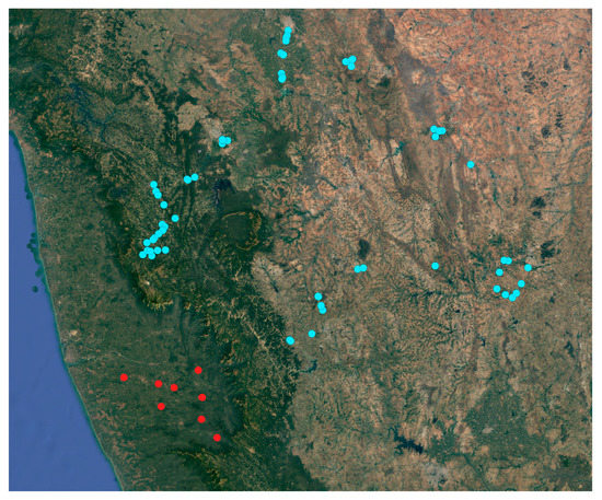- Balanagouda, P.; Sridhara, S.; Shil, S.; Hegde, V.; Naik, M.K.; Narayanswamy, H.; Balsundram, K. Assessment of the spatial distribution and risk associated with fruit rot disease in Areca catechu L. J. Fungi 2021, 7, 797. [Google Scholar] [CrossRef]