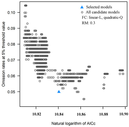 - Cobos, M.E.; Peterson, A.T.; Barve, N.; Osorio-Olvera, L. Kuenm: An R Package for Detailed Development of Ecological Niche Models Using Maxent. PeerJ 2019, 7, e6281. [Google Scholar] [CrossRef] [PubMed] [Green Version]