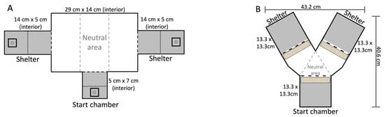 The arena and shelters were all cleaned and wiped thoroughly with a diluted ethyl acetate solution between each trial to remove any lingering scents.
