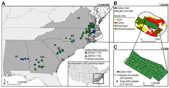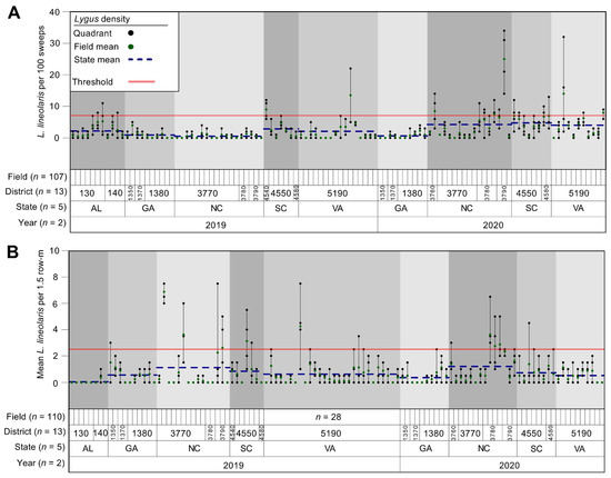 Dorman SJ, Taylor SV, Malone S, Roberts PM, Greene JK, Reisig DD, Smith RH, Jacobson AL, Reay-Jones FPF, Paula-Moraes S, et al. Sampling Optimization and Crop Interface Effects on Lygus lineolaris Populations in Southeastern USA Cotton. Insects. 2022; 13(1):88. https://doi.org/10.3390/insects13010088