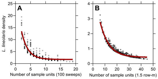 - Naranjo, S.E.; Hutchison, W.D. Validation of arthropod sampling plans using a resampling approach: Software and analysis. Am. Entomol. 1997, 43, 48–57. [Google Scholar] [CrossRef]
