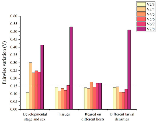 Determination of the optimal number of reference genes according to geNorm. The pairwise variation values below 0.15 indicated that no additional reference gene was needed for the normalization.