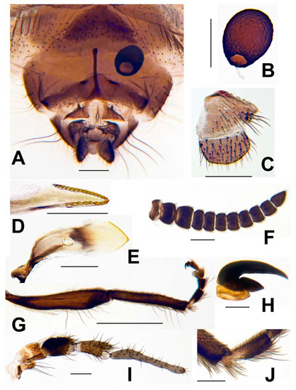 - Takaoka, H.; Otsuka, Y.; Fukuda, M. A new species of Simulium (Boreosimulium) from Hokkaido, Japan (Diptera: Simuliidae). Med. Entomol. Zool. 2006, 57, 35–43. [Google Scholar] [CrossRef]
