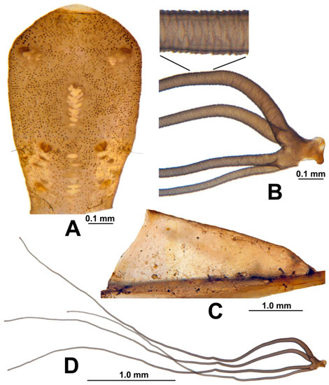 Structures were photographed at multiple focal planes with a Jenoptik ProgRes® SpeedXT Core 5 digital camera mounted on an Olympus BX40 light microscope. Helicon Focus (version 7.7.5) stacking software was used to form composite images across multiple focal planes. All morphological images are from specimens collected at the type locality.