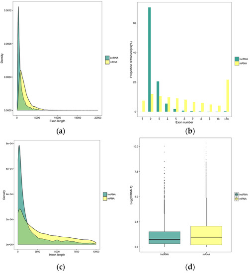 - Kang, Y.-J.; Yang, D.-C.; Kong, L.; Hou, M.; Meng, Y.-Q.; Wei, L.; Gao, G. CPC2: A fast and accurate coding potential calculator based on sequence intrinsic features. Nucleic Acids Res. 2017, 45, W12–W16. [Google Scholar] [CrossRef]