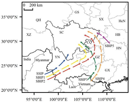 - Liu, Y.C.; Bi, J.C.; Heng, X.R.; Xin, L.Z.; An, W.; Jiang, C.X. On analysis of source area of White-Backed Plant-hopper (Sogatella furcifera (Horváth)) in early immigration to Miyi, Sichuan. J. Southwest China Norm. Univ. (Nat. Sci. Ed.) 2012, 7, 50–55. [Google Scholar] [CrossRef]