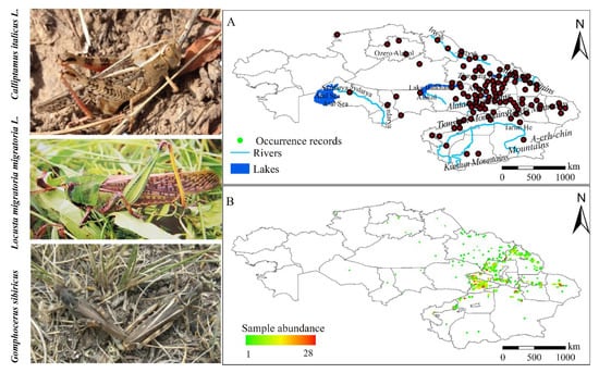 (A) Screened sample records. (B) Spatial richness of typical locust samples when unscreened.