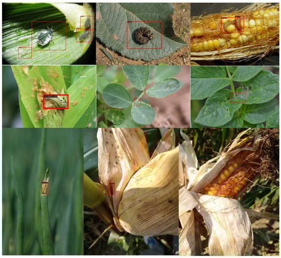 Some examples of visualized detection results of the proposed method. The red boxes represent the predicted location of corn pest.