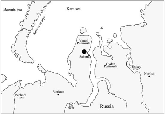 Locality of Ch. laetus and Ch. laetus × Ch. sp. Le1 in the Yamal Peninsula, Russia. The collection site is marked by a big black circle.