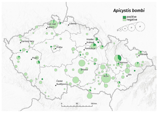 Votavová, A.; Trněný, O.; Staveníková, J.; Dybová, M.; Brus, J.; Komzáková, O. Prevalence and Distribution of Three Bumblebee Pathogens from the Czech Republic. Insects 2022, 13, 1121. https://doi.org/10.3390/insects13121121