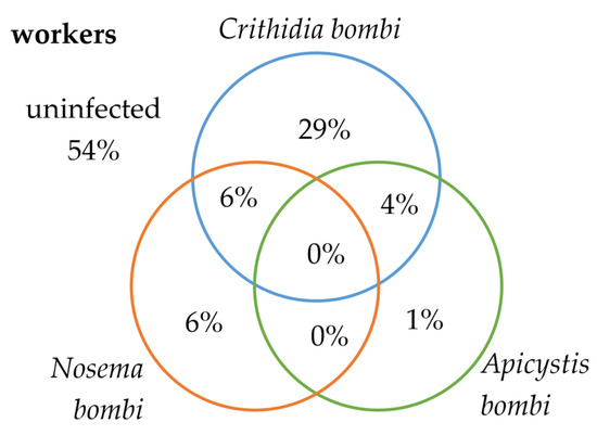 APA StyleVotavová, A., Trněný, O., Staveníková, J., Dybová, M., Brus, J., & Komzáková, O. (2022). Prevalence and Distribution of Three Bumblebee Pathogens from the Czech Republic. Insects, 13(12), 1121. https://doi.org/10.3390/insects13121121