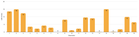 Twenty-three Harmonia axyridis (Pallas, 1773) were collected on Citrus sp. infested by whiteflies (A. spiniferus and A. floccosus) in the University of Bari Aldo Moro Campus tested with LAB. Each ladybird interplayed in a Petri dish (Table 2) with one LAB.