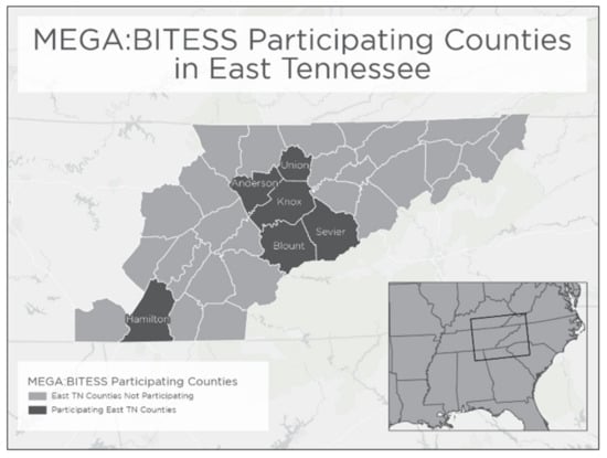We developed a community health program to prevent LACV infections in the children of East Tennessee by empowering students, teachers, and the community through STEM education to help control target populations of LACV-infected mosquitoes. The 6th–12th grade STEM education program is grounded in the best practices of recent science education reform initiatives and uses inquiry-driven learning and experiences that open the doors to students’ desire to investigate STEM phenomena. Thus far, 15 trained educators have (1) guided more than 415 students in classroom independent experiments to monitor and assess mosquito populations at their schools and (2) generated high-quality datasets that are being used by University of Tennessee graduate students and will be used by public health professionals. These results will be used to plan and target efficient, cost-effective, and targeted mosquito control efforts. Additionally, students participating in the MEGA:BITESS program gain increased STEM knowledge, with educators reporting students’ high, continuing enthusiasm for and curiosity about the disciplines and subject matter. Students have also engaged in additional communication-based activities at participating schools by creating their own projects, such as submissions to science fair competitions, podcast contests, and school newspaper articles.