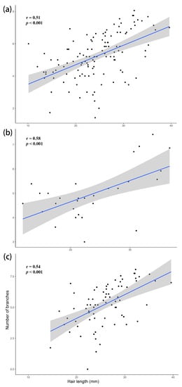 3.2. Correlation between Hair Length and Number of Branches