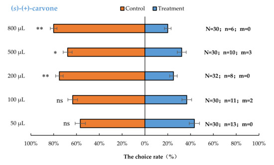 Chicago/Turabian StyleCao, Dandan, Jianfeng Liu, Zhengping Zhao, Xuewu Yan, Weichao Wang, and Jianrong Wei. 2022. "Chemical Compounds Emitted from Mentha spicata Repel Aromia bungii Females" Insects 13, no. 3: 244. https://doi.org/10.3390/insects13030244