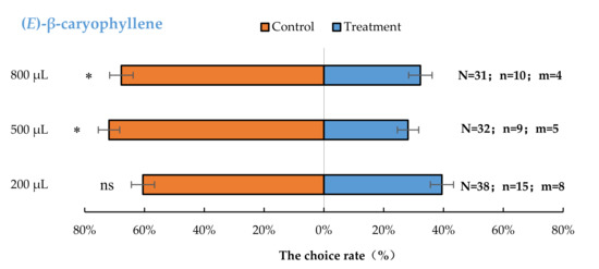 - Liu, Y.; Xie, D.S.; Hu, C.H.; Dong, W.X.; Zhang, F.; Zhang, J.P.; Xiao, C. Influence of β-caryophyllene on the behaviors of female Drosophila suzukii. Environ. Entomol. 2018, 40, 684–689. [Google Scholar]