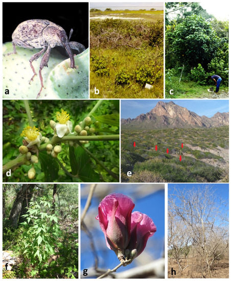 - Fryxell, P.A.; Lukefahr, M.J. Hampea Schlecht: Possible primary host of the boll weevil. Science 1967, 155, 1568–1569. [Google Scholar] [CrossRef] [PubMed]