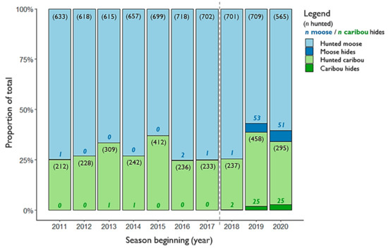 | Harvested animals (Moose + Caribou) | 1167 | 860 |