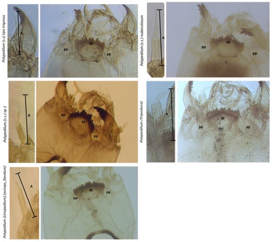 - Saether, O.A.; Andersen, T.; Pinho, L.C.; Mendes, H.F. The problems with Polypedilum Kieffer (Diptera: Chironomidae), with the description of Probolum subgen. n. Zootaxa 2010, 2497, 1–36. [Google Scholar] [CrossRef]