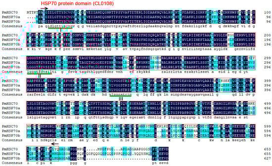 3.1. Sequence Analysis of PmHsc70, PmHsp70a, and PmHsp70b