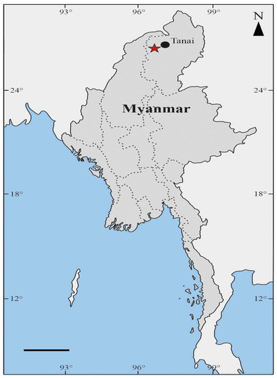 Type locality. Kachin State, near Tanai, northern Myanmar; Upper Cretaceous (lower Cenomanian) in age [25].