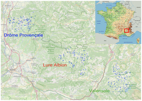 For 13 years, 268 apiaries were surveyed. There are three distinct regions of lavender production: Drôme Provençale, Plateau de Valensole and Montagne de Lure et Plateau d’Albion (Figure 1). Altogether, 4726 colonies have been monitored.