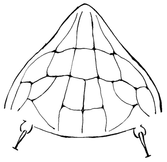 A detailed morphological study of Ac. taihangensis was not possible owing to the few specimens comprising the ethanol’s preserved paratypes, as well as the strong tissue fixation induced by ethanol, which were unsuitable for a tissue digestion. However, it was possible to check the morphology of the prodorsal shield of a single female paratype, and the anterior lobe resulted to be rounded (Figure 4). The pattern of the prodorsal shield is characterized by a short median line on the rear half of the shield, a complete pair of admedian lines, two transverse lines joining the median with the admedian lines on the rear half of the shield forming four cells in the middle field of the shield, and a transverse line joining the admedian lines on the anterior one third of the shield forming two median cells; this transverse line continues in a pair of outer and arched submedian lines contributing to the delimitation of further cells between the submedian lines and the anterior-lateral edge of the shield (Figure 4). The original description of Ac. taihangensis indicates the presence of a complete median line [37], but a weak or obscure median line has also been observed in the anterior half of the shield in some specimens of the currently studied population of A. mosoniensis.