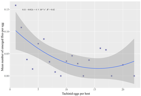 Relationship between the mean number of tachinid flies in response to the number of eggs per host.
