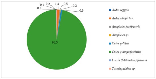 Two specimens of Anopheles (n = 2: 0.2%) and two from Toxorhynchites (n = 2: 0.2%) could not be identified due to specimen damage (Figure 4).