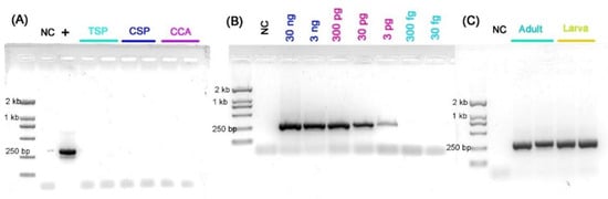 APA StyleJiao, J., Ren, L., Chen, R., Tao, J., & Luo, Y. (2022). A LAMP Assay for the Detection of Thecodiplosis japonensis, an Alien Gall Midge Species Pest of Pine Trees. Insects, 13(6), 540. https://doi.org/10.3390/insects13060540