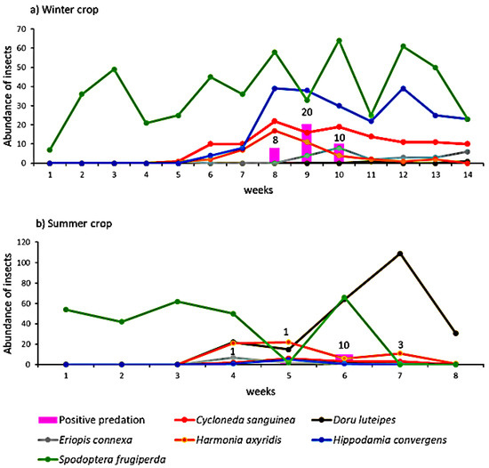 | Eriopis connexa | - | - | 4 | - | 8 | 25± 0.3 | 7 | - | 1 | - | 1 | - | 1 | - |