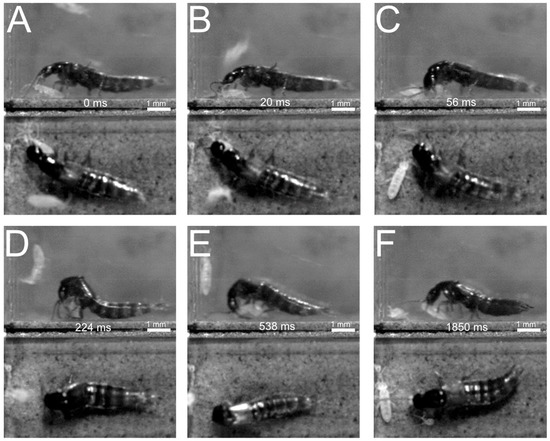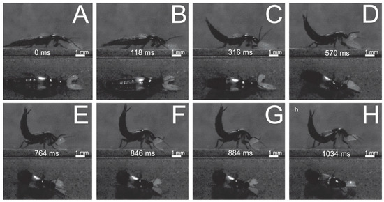 - Bauer, T.; Pfeiffer, M. ‘Shooting’ springtails with a sticky rod: The flexible hunting behaviour of Stenus comma (Coleoptera; Staphylinidae) and the counter-strategies of its prey. Anim. Behav. 1991, 41, 819–828. [Google Scholar] [CrossRef]