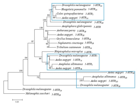 3.1. Phylogenetic Analysis of Ae. aegypti 5-HTR Proteins