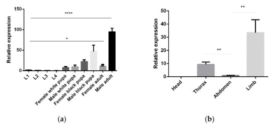 - Livak, K.J.; Schmittgen, T.D. Analysis of relative gene expression data using real-time quantitative PCR and the 2(-Delta Delta C(T)) Method. Methods 2001, 25, 402–408. [Google Scholar] [CrossRef]