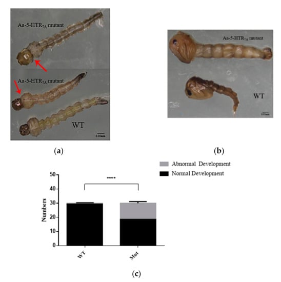 3.4. Morphological Changes in 5-HTR7A Mutant Mosquitoes