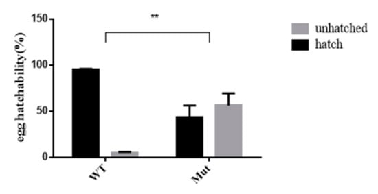 3.6. Effects of 5-HTR7A Mutations on Egg Hatching in Offspring