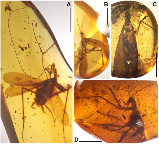 - Grimaldi, D.A.; Engel, M.S.; Nascimbene, P.C. Fossiliferous Cretaceous amber from Myanmar (Burma): Its rediscovery, biotic diversity, and paleontological significance. Am. Mus. Novit. 2002, 3361, 1–71. [Google Scholar] [CrossRef]