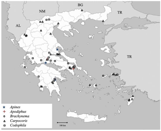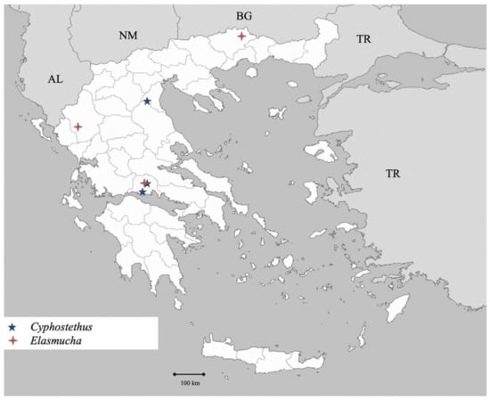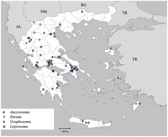 Collection sites for each species are presented in the same fashion as Drosopoulos et al. [50]. The altitudes and distances reported for the collection sites may deviate ca. 50 m and ca. 500 m respectively.
