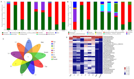 - Yun, J.H.; Roh, S.W.; Whon, T.W.; Jung, M.J.; Kim, M.S.; Park, D.S.; Yoon, C.; Nam, Y.-D.; Kim, Y.-J.; Choi, J.-H.; et al. Insect gut bacterial diversity determined by environmental habitat, diet, developmental stage, and phylogeny of host. Appl. Environ. Microbiol. 2014, 80, 5254–5264. [Google Scholar] [CrossRef] [PubMed]